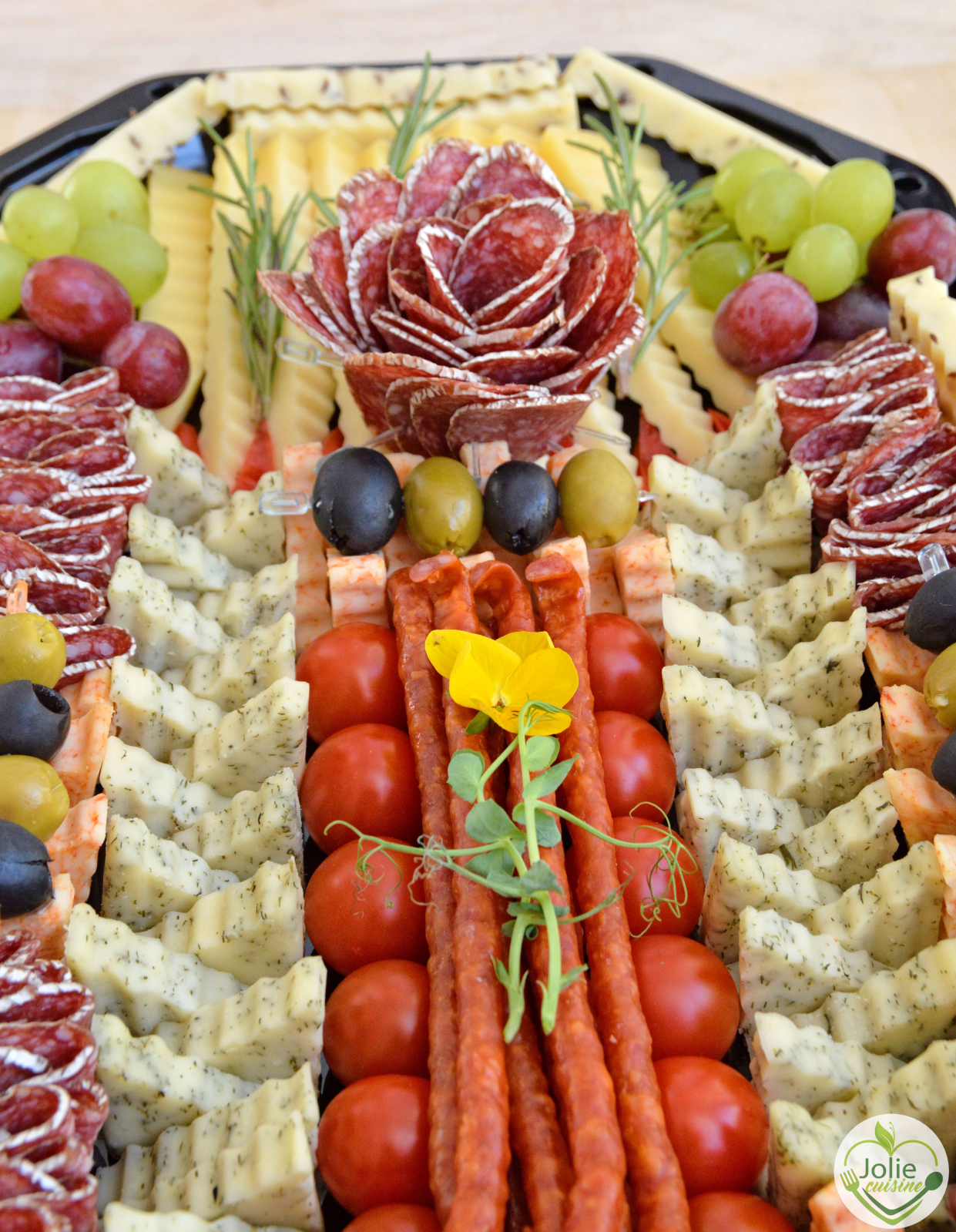 Platoul contine: branza maturata artizanala, branza cu marar, branza cu chimen, branza cu boia, salam peles (crud, uscat, maturat lent si afumat cu lemn), carnaciori sticks, rosii cherry, masline, struguri, nuci.
